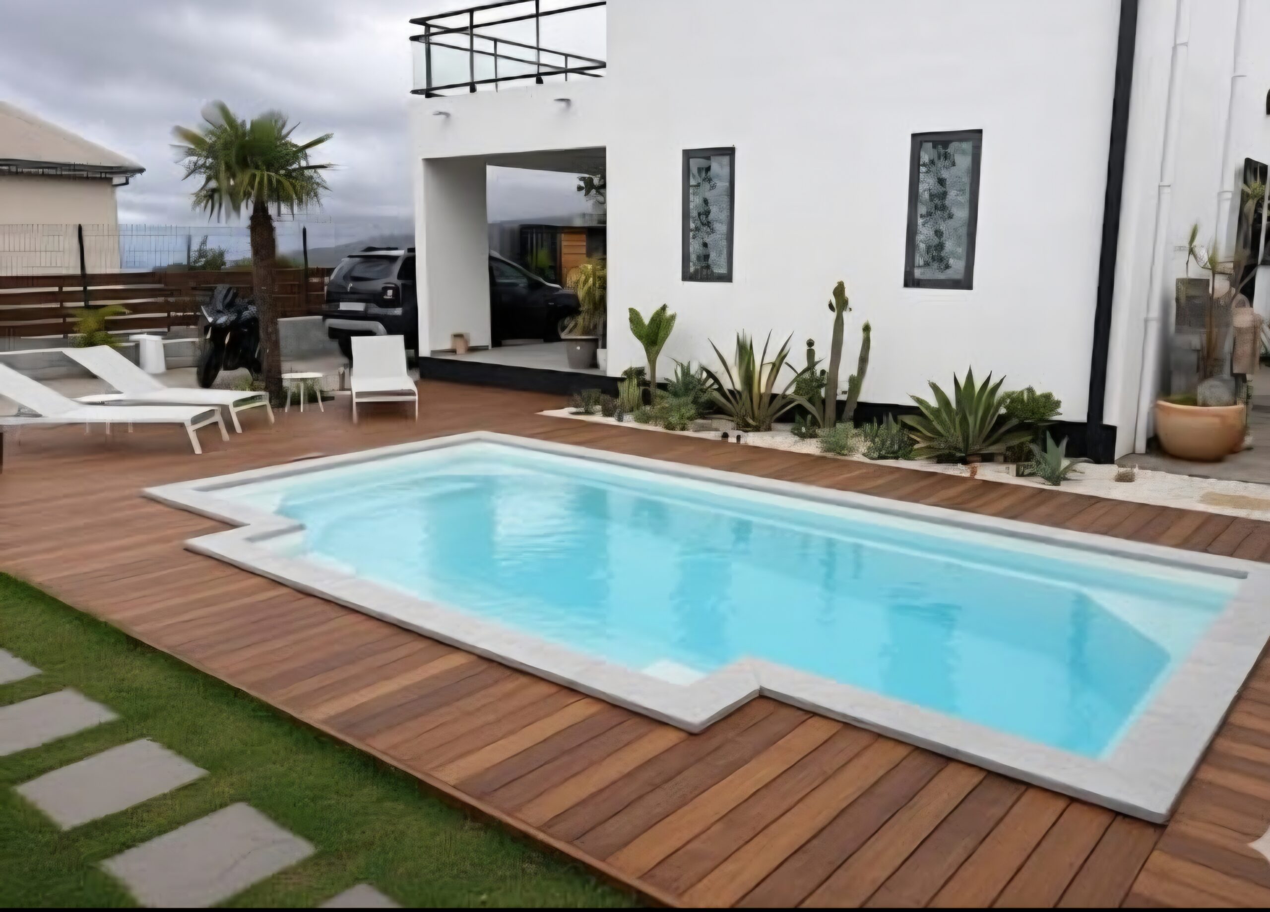 Le modèle Hawaï s’impose comme le cœur de votre jardin grâce à son large escalier central qui offre une entrée majestueuse et sécurisée dans l’eau. Cette banquette spacieuse au milieu du bassin devient un véritable salon immergé, idéal pour se prélasser tout en discutant. Sa forme symétrique apporte une élégance classique et un équilibre visuel parfait à votre espace extérieur. Alliant convivialité et style, la Hawaï est la piscine familiale par excellence pour savourer de longs après-midis de détente.
